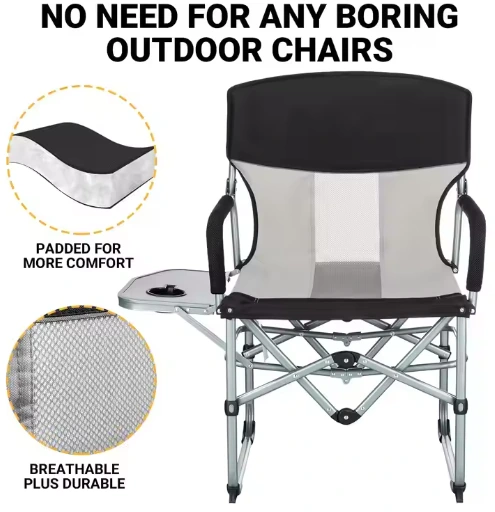 BBQ Camping -Picknickstuhl, Klappcampingstuhl, Hochleistungs -tragbare Direktorenstühle für Erwachsene mit Seitentisch -Mesh -Back -Kompaktstil für den Outdoor