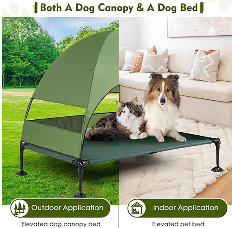 Katzen- und Hundebett mit Baldachin, verbessertes erhöhtes Hundebett mit Baldachin, tragbares erhöhtes Hundebett für den Außenbereich mit stabilen rutschfesten Füßen, breiteres, schattiges Haustierbett, erhöhte Hundebetten für Camping mit großen Hunden, Verwendung im Innen- und Außenbereich.