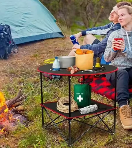 Beachtisch im Freien im Freien. Faltbare quadratische Canvas -Tisch kann nicht nur im Innenbereich verwendet werden, sondern auch zum Campen, Angeln, Wandern, Strand, Picknick, Grill, Kochen. , Schlüssel usw., was Snacking bei Outdoor -Aktivitäten erleichtert und sauberer macht. Auf der oberen Ebene des Tisches gibt es eine weitere Stufe für zusätzlichen Platz, um Lebensmittel zu halten.