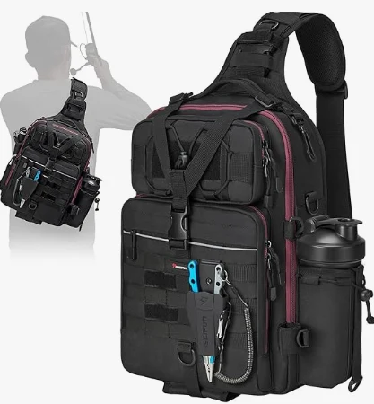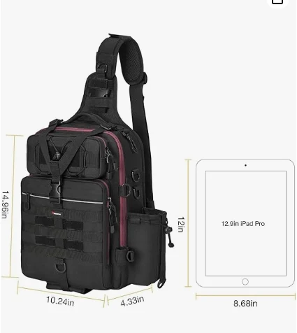 Outdoor -Fischereistasche.Gonomisches Gesamtdesign, einschließlich des erweiterten Schultergurtes und dem ärgerlichen Netzdesign, macht es für längere Perioden bequem. Die linke Tasche ist für Wasserbecher/Flaschen und die rechte Tasche für Werkzeuge wie Zange. Modisch und belastbar ist unsere Tasche perfekt für das Leben im Freien