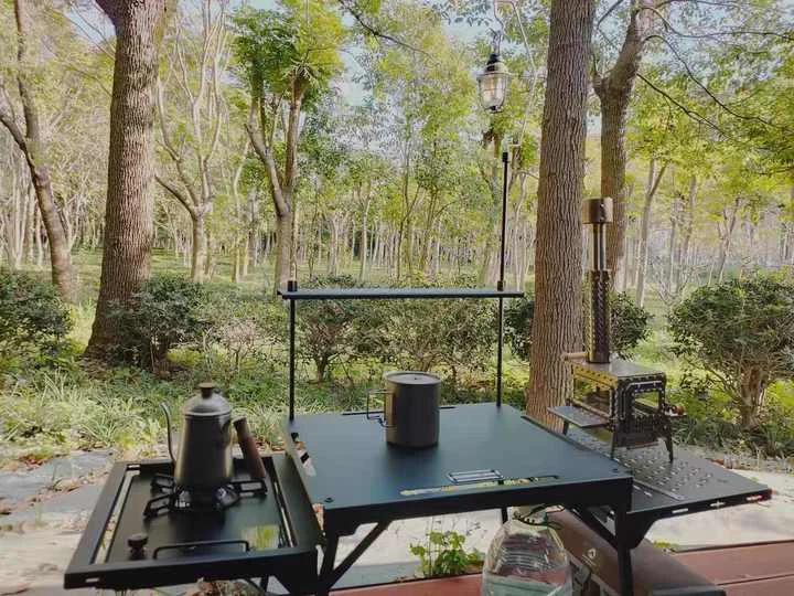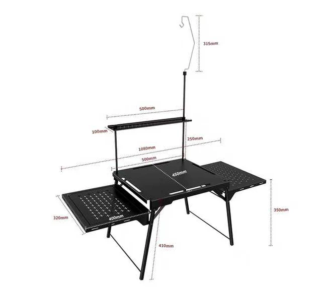 Tragbares faltbares Aluminium-Eisen-Camping-Tisch, Esstischplattform besteht aus oberen, mittleren und unteren Teilen mit ausreichender Platz, um alle Arten von Tabellengeschirr, Lebensmitteln und Gewürzen aufzubewahren.