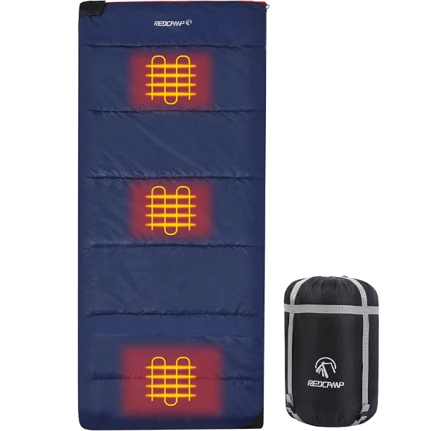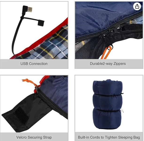 Tragbarer, erhitzter wasserdichter Schlafsack, indem Sie einen Knopf drücken, erleichtert es Ihnen, die Temperatur entsprechend Ihren Bedürfnissen anzupassen, was die ganze Nacht über Wärme und Komfort bringt.