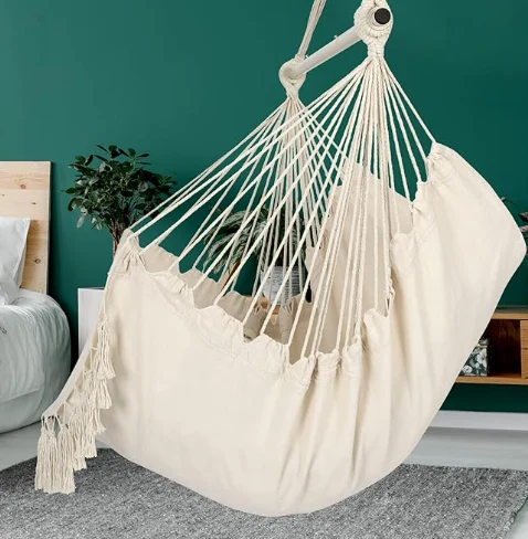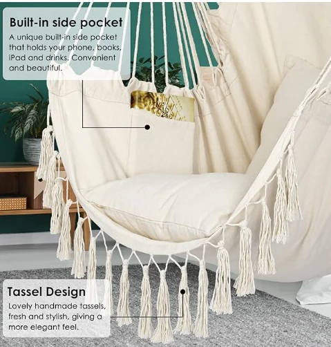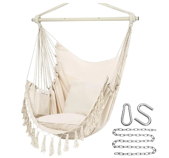 Nähen Fallschirmhängematte nähen. Finden Sie einfach einen Zweig, einen Strahl- oder Hängemattenrahmen, einen großartigen Swing -Stuhl für Außen- oder Innenseite. Es ist sehr geeignet für den Einsatz in Schlafzimmern, als Zimmerdekor, Balkone, Innenhöfe und Gärten. Wenn Sie eine Rückkehr benötigen, entfernen Sie das Etikett nicht vom Schwungstuhl