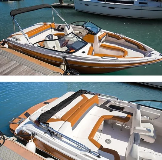 Edelstahlboot Bimini Top, bestehend aus marine Grad 600D Polyester -Leinwand mit doppelter PU -Beschichtung bietet einen guten Schutz vor Sonnenlicht, Meerwasser, Regen und Staub.