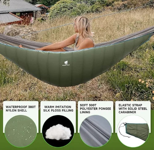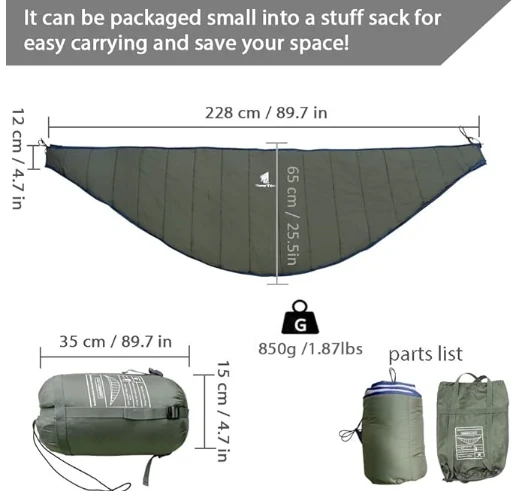Reisencamping -Hängematte, kombinieren Sie den Komfort eines Schlafsacks und die Isolierung einer Hängematte, erleichtern Sie es einfacher, mit einer beliebigen Hängematte der Standardgröße zu passen. Es eignet sich perfekt zum Campen, Rucksack, Jagd, Aktivitäten im Freien, Bergsteigen
