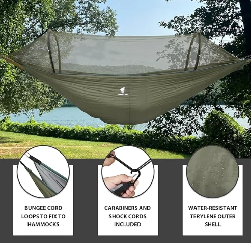 Diese Hängematte kann zu einer kompakten Größe für den Rucksackverbrauch werden, ideal zum Campen, Wandern, Reisen