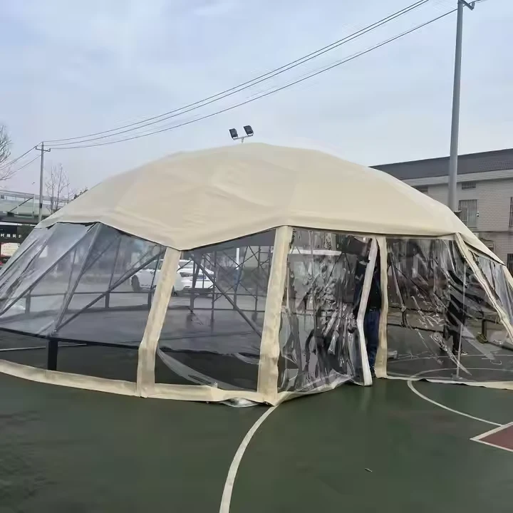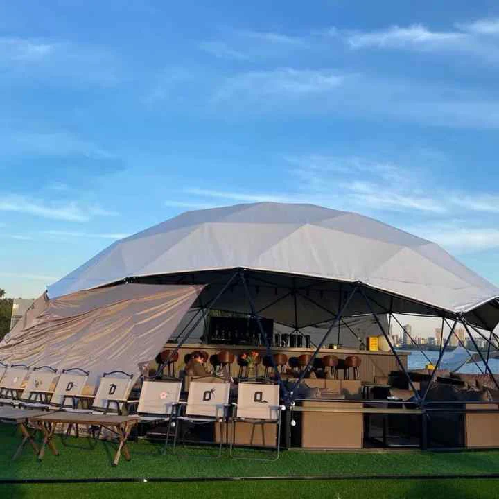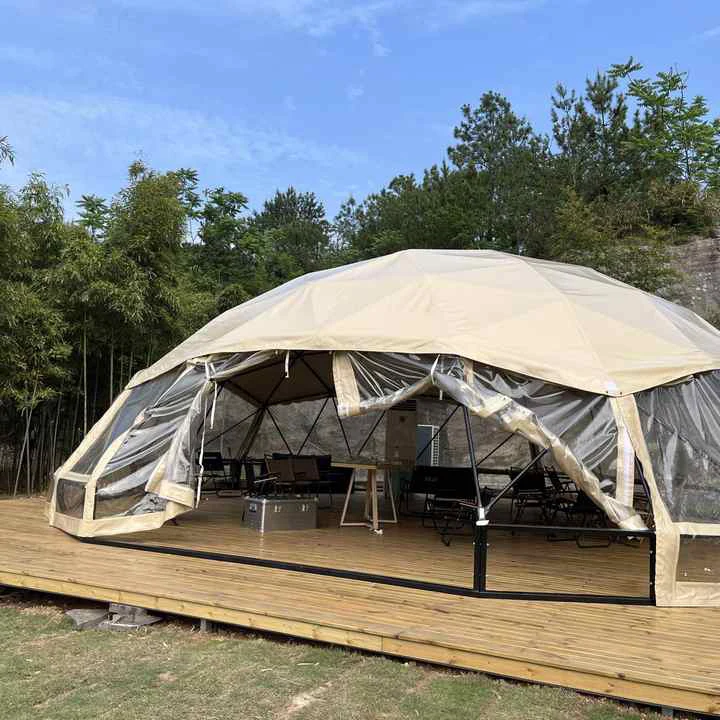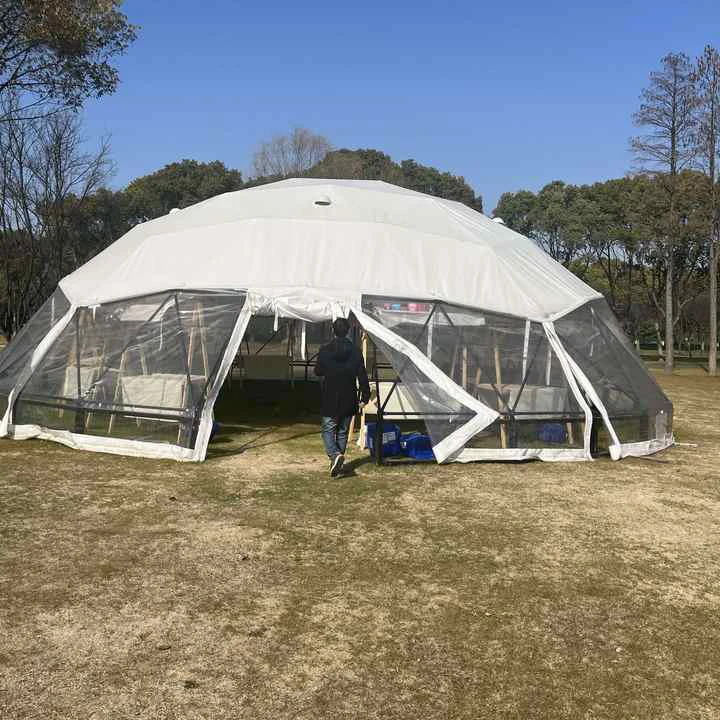 Windproofes taktisches geodätisches Basislager -Zelt. Ob Sie einen Campingausflug planen, veranstalten einen Garten, der sich für einen unterhaltsamen Tag zum Strand versammelt, eine ideale Wahl für Familien, die Bequemlichkeit und Komfort suchen. Zhejiang Jiyu Outdoor Products Co. Ltd. bietet einen ungehinderten 360-Grad-Blick auf die Umgebung und macht Ihr Erlebnis im Freien angenehmer und komfortabler.